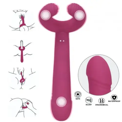 Первый мотор расположен на кончике вибратора, обеспечивая интенсивную стимуляцию самых чувствительных зон. Второй мотор расположен посередине вала, производя глубокие вибрации, которые заставят вас дрожать от удовольствия. И, наконец, третий двигатель расположен в основании игрушки и обеспечивает дополнительную стимуляцию клитора или промежности.