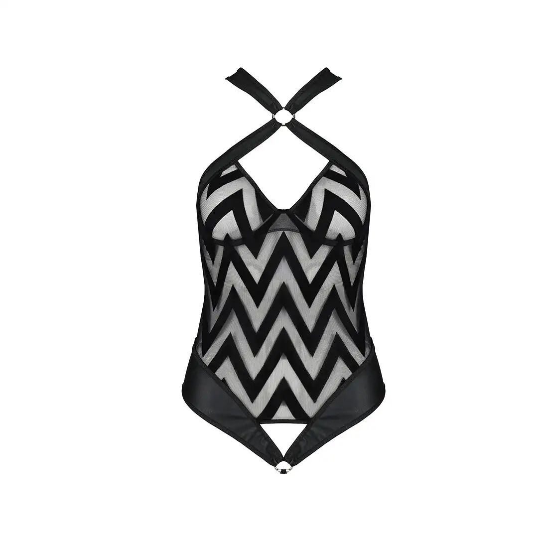 Сетчатый боди с халтером и ритмичным рисунком Hima Body black XXL/XXXL - Passion