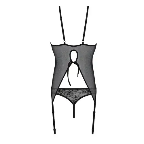 Корсет с пажами, трусики с ажурным декором и открытым шагом Ursula Corset black S/M — Passion