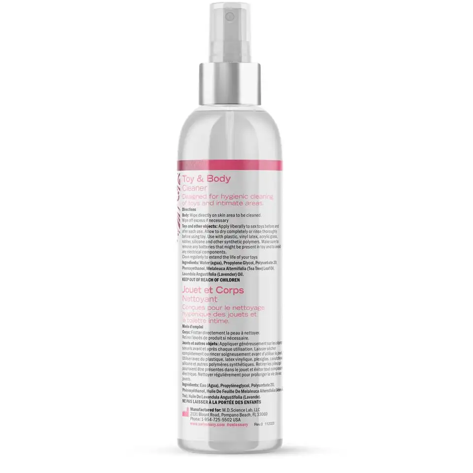 - The Desire by Swiss Navy Toy & Body Cleanser — эффективное решение для поддержания чистоты ваших секс-игрушек. - Он сделан из высококачественных ингредиентов, которые нежны, но эффективны. - Безопасен для использования на всех типах секс-игрушек, включая силикон, резину, латекс, стекло, металл или пластик. - Можно использовать на всех частях тела, включая половые органы. - Простая в использовании формула, не оставляющая следов. - Поставляется в удобной бутылке объемом 118 мл, идеально подходящей для путешествий. - Не содержит агрессивных химикатов, таких как парабены или сульфаты, которые могут вызывать раздражение или аллергические реакции на чувствительных участках кожи.