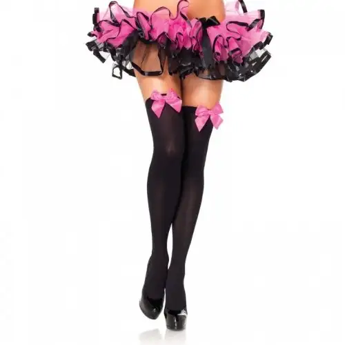 Чулки Leg Avenue черные с белым бантом.