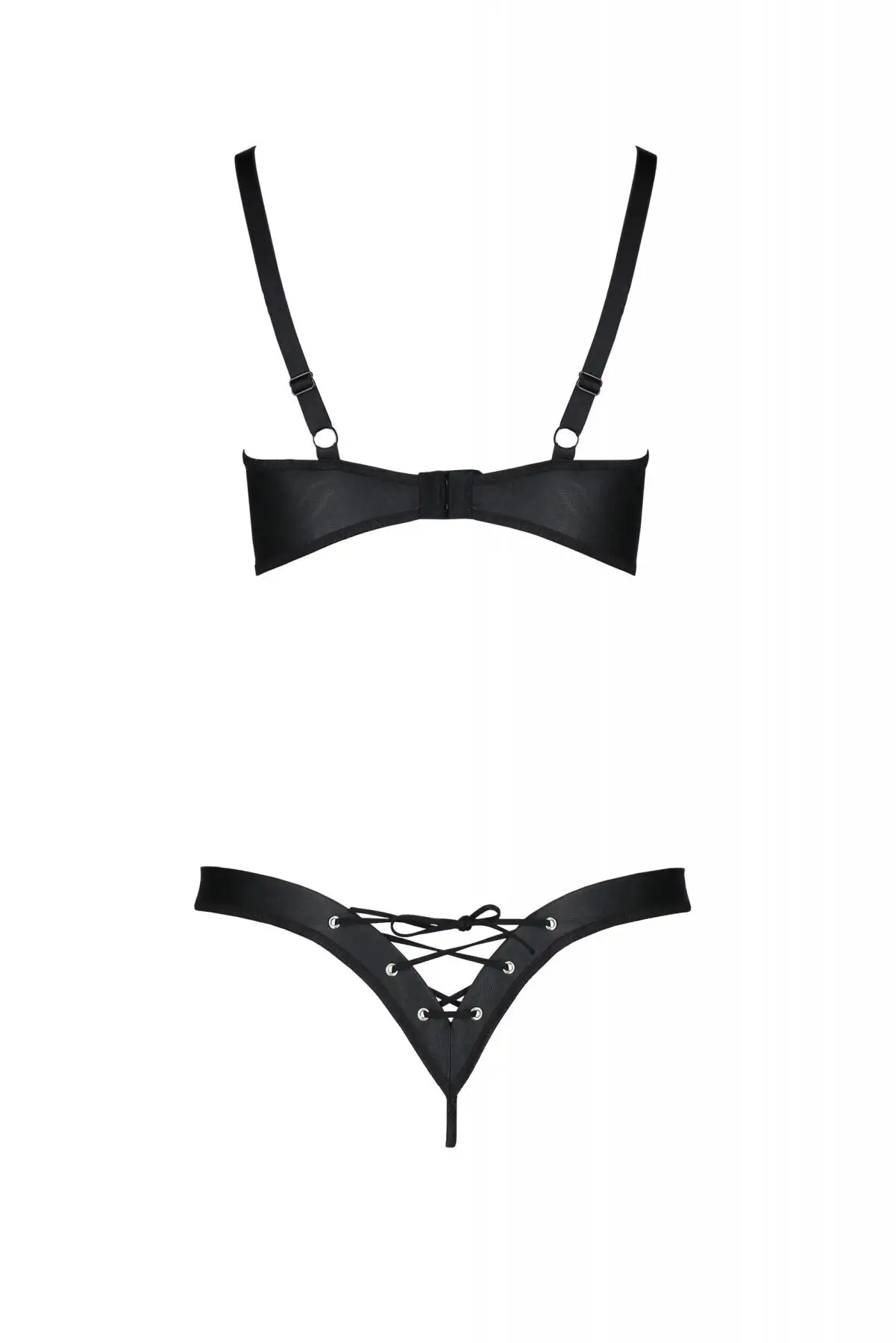 Комплект из экокожи Passion Celine Bikini 6XL/7XL black, открытый бра, стринги со шнуровкой