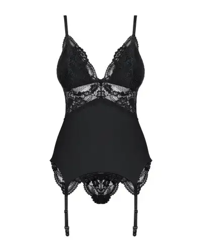 Сатиновый кружевной корсет Obsessive 810-COR-1 babydoll & thong S/M, черный, корсет, танга