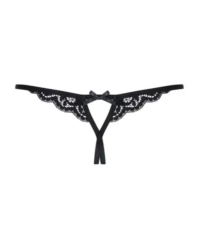 Кружевные танга с двумя отверстиями Obsessive 831-THC-1 crotchless thong L/XL, черные, бантики