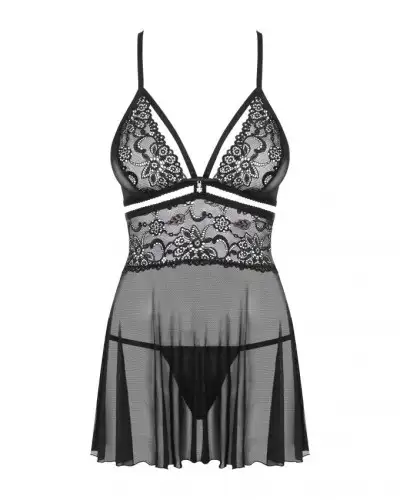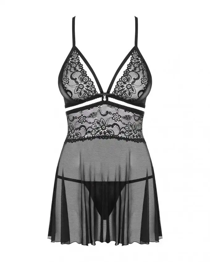 Эротический кружевной комплект с сеточкой Obsessive 838-BAB-1 babydoll & thong black S/M, черный