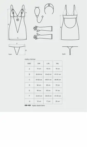 Этот комплект нижнего белья, изготовленный из высококачественных материалов, удобен в носке и позволит вам чувствовать себя уверенно и сексуально. Мини-платье имеет прозрачные вставки, которые подчеркивают ваши изгибы, но при этом оставляют простор для воображения. Регулируемые лямки для чулок позволяют настроить посадку чулок так, чтобы они оставались на месте всю ночь.