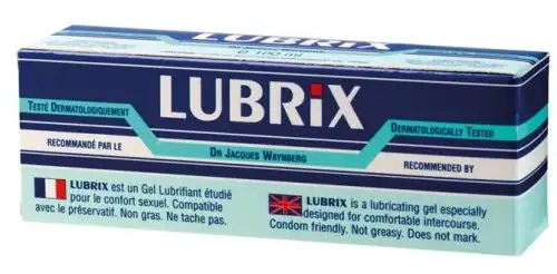 - Лубрикант LUBRIX на водной основе. Хорошо увлажняет, без цвета и запаха. Не оставляет пятен. Можно использовать с презервативами, изделиями из латекса, киберкожи, секс игрушками.