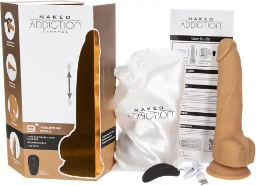 Фаллоимитатор с пульсацией Naked ADDICTION Dominic 9″ Caramel, пульт ДУ, диаметр 4,2 см