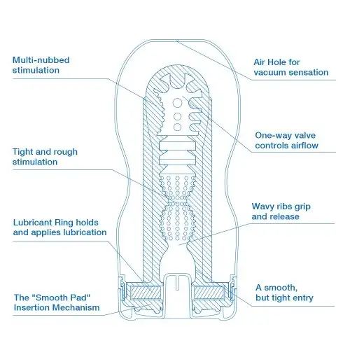 Мужчины остаются в восторге особенно от специальных камер с клапанами. При использовании секс игрушки, они создают перепады давления, за счет чего возникает эффект сосания. Вакуум регулируется с помощью специальных вентиляционных отверстий. Верхние отверстия можно оставлять открытыми или закрытыми. Их регулировка выполняется при помощи пальца. За счет этого есть возможность изменения интенсивности всасывания.