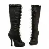 Гламурные черные сапоги TABATHA американского производства выполнены из высококачественного сатина. На представительнице прекрасного пола они будут смотреться сногсшибательно, утонченно. Высота каблука составляет 10 см. В них спокойно можно выйти на улицу, единственное, что нужно учитывать, это то, что погода при этом должна быть сухая. Эти изделия не любят влагу, плохо ее переносят.