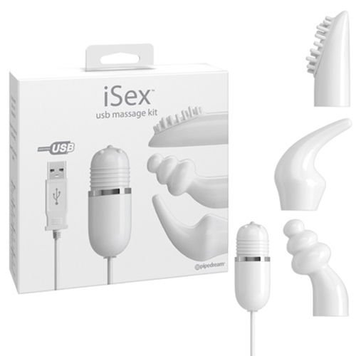 Набор секс-игушек ISEX USB MASSAGE KIT, который состоит из вибропули и различных насадок.