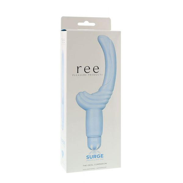 Фаллоимитатор вибромассажер REE Surge, голубой. Материал - ТПР. Длина - 15 см, диаметр - 3 см.