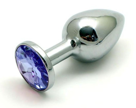 Металлическая анальная пробка с кристаллом под "SWAROVSKI". Изготовлена из гладкой, медицинской стали. Голубой кристалл. Бестселлер! Небольшого размера. Длина - 8,5 см, диаметр - 3 см.