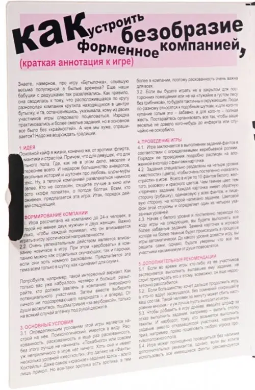 Эта игра идеально подходит для пар, которые хотят добавить волнения и приключений в свои отношения, или для групп друзей, которые хотят весело провести ночь. Благодаря простым инструкциям и увлекательным задачам эта игра будет развлекать вас часами подряд.