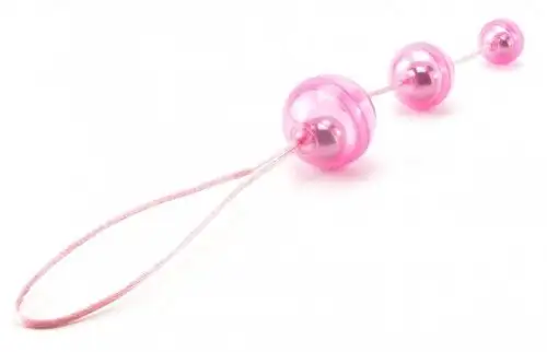 - Особенности - разные по диаметру шарики, со смещенным центром тяжести. Соединены между собой нейлоновой нитью. Можно использовать как для вагинальной, так и для анальной стимуляции.