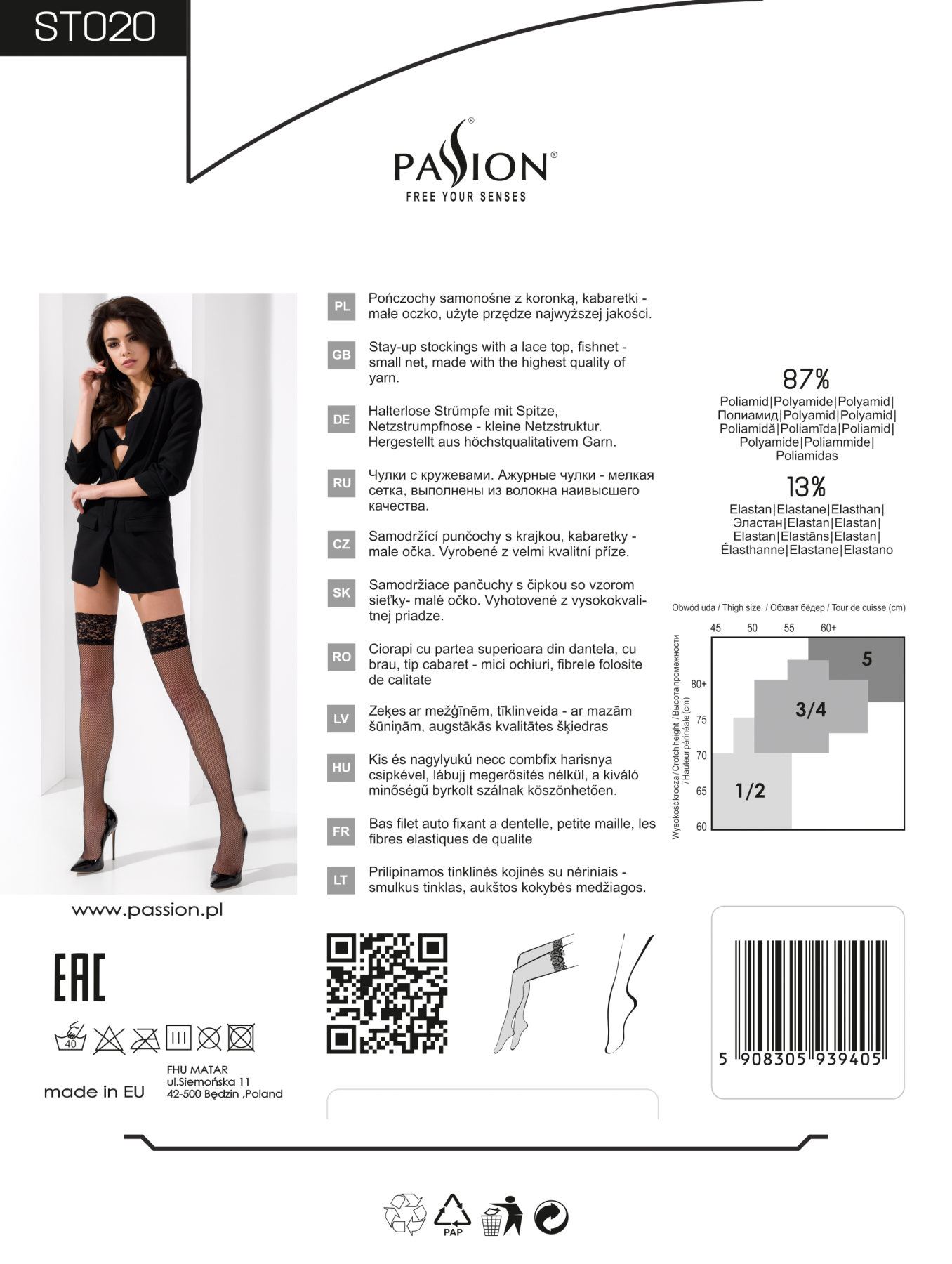 Всегда оставаться элегантной, изящной, сексуальной и привлекательной помогут чулки ST020 5 - XXL nero – Passion от европейского бренда. Они станут главной изюминкой вашего образа и сделают самым желанным секс-объектом для любимого мужчины. Чулки в мелкую черную сетку плотно облегают ножки, подчеркивая их красоту и стройность. Широкая резинка вверху оснащена двумя строчками силикона, которые гарантируют надежную фиксацию на бедре. А значит, чулки не сползают и не причиняют дискомфорт. Также вы можете не пользоваться поясом, так как в нем нет необходимости. Но для эротического стриптиза или жаркого свидания без него и шикарного белья не обойтись.