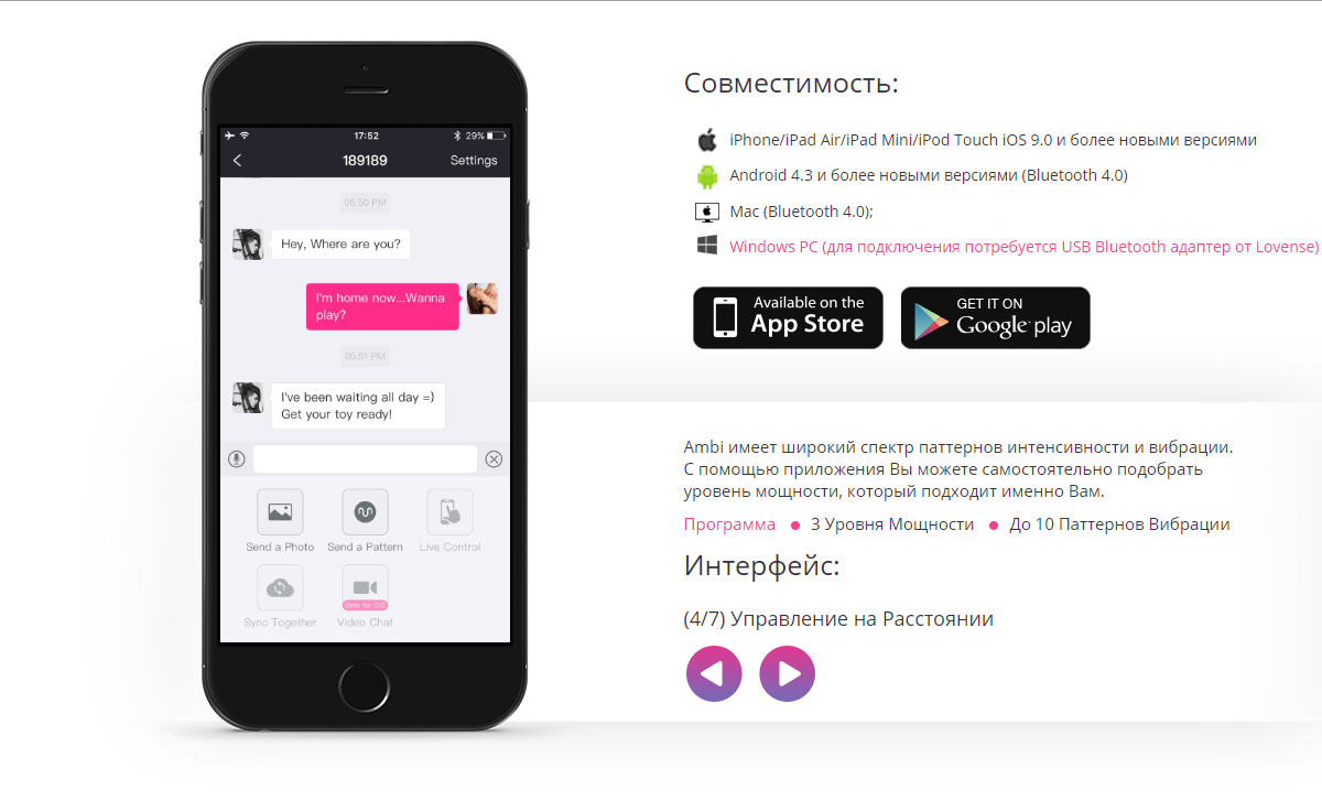 Так как вибратор Lovense – Ambi является технологической новинкой, основные его достоинства связаны с этой сферой:
