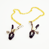 Bijoux Indiscrets Flash Cross Gold Украшения для сосков! Это изысканное украшение идеально подходит для того, чтобы добавить нотку гламура и блеска в ваши интимные моменты. Это украшение для сосков, изготовленное из позолоченного металла, имеет красивый дизайн в виде креста с двумя свисающими цепочками, которые добавят вашему образу дополнительную чувственность. Регулируемая цепочка позволяет настроить посадку для максимального комфорта и удовольствия. Если вы ищете что-то особенное для спальни или просто хотите добавить блеска и гламура в свой повседневный образ, эти украшения для сосков обязательно произведут впечатление. Благодаря своему уникальному дизайну и роскошным материалам он обязательно станет одним из ваших любимых предметов!
