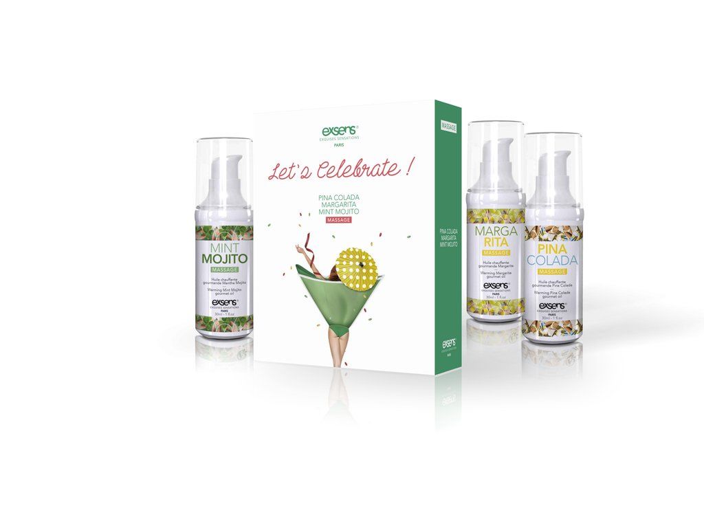 Интимные встречи будут приносить еще больше удовольствия, если прямо сейчас закажите набор массажных масел EXSENS Lets Celebrate, который сделает ласки нежнее, страстнее. Масла обладают приятным вкусом и незабываемым ароматом, а главное – тепловым эффектом. Достаточно нанести пару капель на эрогенные точки, чтобы повысить чувствительность, и вы будете стонать от наслаждения. В наборе три масла со вкусом пина колады, маргариты и мохито.