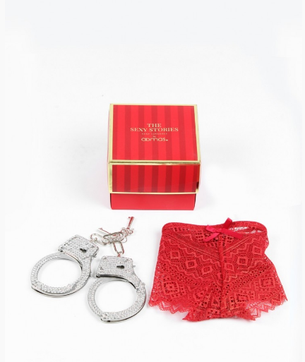 Милые красные трусики выполнены из эластичного и мягкого материала, который отлично тянется и не вызывает аллергию, дискомфорт. Носить трусики можно каждый день или надевать для особенных случаев. Наручники выполнены из надежного и прочного металла, размер – универсальный, поэтому подойдут всем. Но главное – это украшение из сотни стразов, которые невероятно блестят и смотрятся очень стильно. Упакованы трусики и наручники в подарочную коробку, что делает из набора отличный презент для любовницы, возлюбленной или близкой подруги.