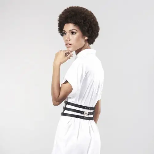 Данная модель портупеи представлена в виде роскошного пояса из трех ремешков, который внешне аналогичен коже. Аксессуар прекрасно сочетается и с платьем, и с рубашкой, и с эротическим бельем. Из-за того, что застежки можно регулировать по длине и ширине, портупея будет хорошо сидеть практически на любой фигуре.
