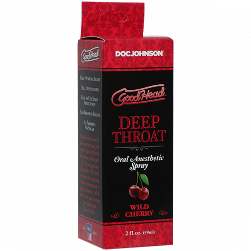Doc Johnson GoodHead Deep Throat Spray Дикая вишня (59 мл). Этот спрей разработан, чтобы помочь вам достичь более глубокого и интенсивного орального опыта. Уникальная смесь натуральных ингредиентов помогает уменьшить рвотный рефлекс и создать более плавный и приятный опыт для обоих партнеров. Вкус дикой вишни добавит дополнительный уровень удовольствия и волнения в ваши интимные моменты.