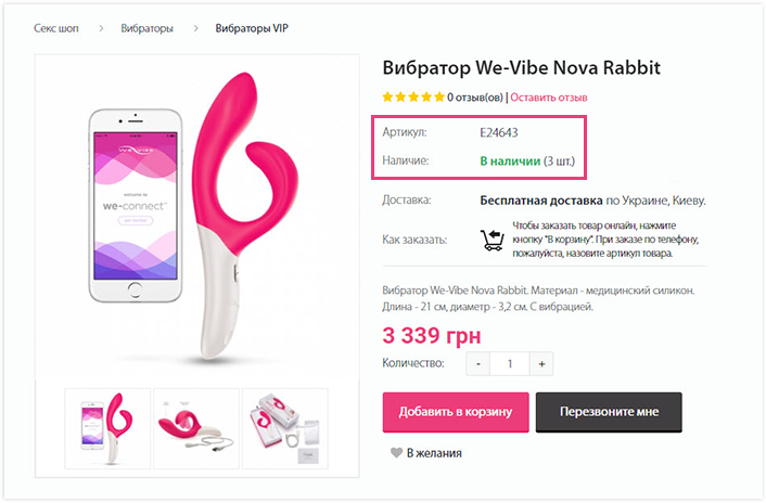 - артикул товара;